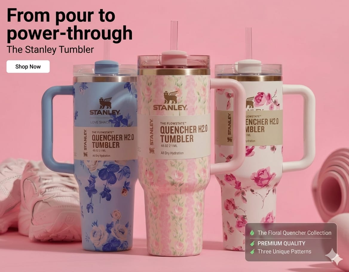 Stanley Quencher Floral Pink and Green Love Shack Fancy Box H2.0 1.18L Insulated Tumbler with Handle & Straw – Stainless Steel Travel Mug | Hot & Cold Vacuum Water Bottle